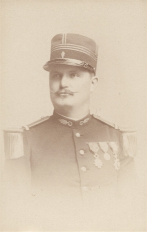 arborant sa légion d'honneur, sa médaille du Tonkin, l'ordre royal du