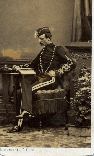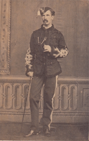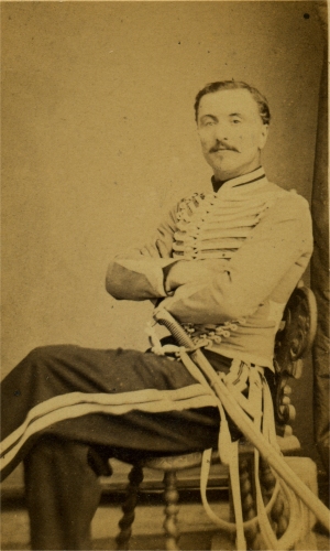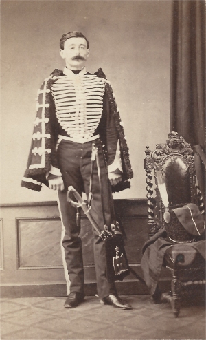 2em Hussard Dolman et pelisse marrons, parements bleus, puis garances (après 1860) Tresses blanches Pantalon bleu jusqu'en 1860, puis garance |