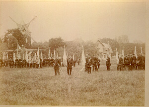 Le moment est solennel. Dans ses souvenirs, le général Millet raconte : "Tous, nous avions fait la guerre de 70, et tous, ou presque tous, nous avions eu nos aigles ou livrés à l'ennemi, ou brûlés, ou partagés entre nous. Aussi cette remise des drapeaux nous causa-t-elle à chacun individuellement une émotion aussi douloureuse que profonde, mais intime, qui n'eut sa manifestation véritable que quelques instants plus tard. Tambours et trompettes sonnent aux champs, toutes les musiques entonnent la Marseillaise, le défilé commence... A ce moment mon coeur sursaute, je n'y vois plus. Je ne sens plus, je suis fanatisé et si une vague de feu s'était élevée devant nous, je m'y serais précipité. Jamais je n'ai été hors de moi-même comme à ce moment là."