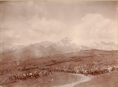 Du 1 au 10 Aout 1897, le Président Felix Faure effectue un voyage dans les Alpes. A cette occasion, il assite aux manoeuvres des Alpes du 5 au 8. Le Président passe à cheval une revue sur le Mont Cenis et assite à des manoeuvres de montagne que le général Zurlinden commandant du 15em corps d'armée decrit "plus interessantes du point de vue de l'altitude et du coup d'oeil, qu'à celui de l'art militaire".