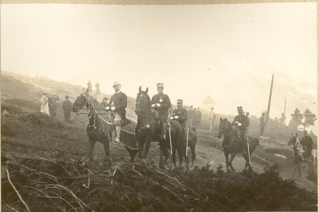 Suivi par le général Billot, ministre de la guerre, un général de division, le général Hagron, chef de la maison militaire de la Présidence et le général Zédé, commandant le 14em CA, le Président se rend du replat des canons au plateau du grand Coin.