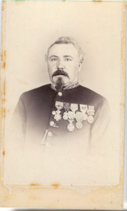 Le 31/12/1863, Playoust est nommé Garde du génie de 2e classe, tenue dans laquelle il est photographié ci dessus, arborant une impressionnante série de décorations, dont celle mexicaine de la Guadalupe, reçue en 1866.