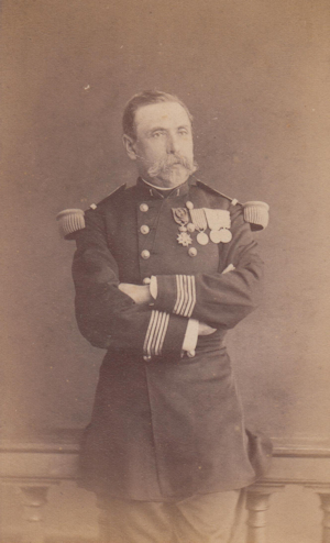 jusqu'au 26/8/1856. Chef de bataillon le 12/8/1862, il est major du 88e RI et reçoit la croix de la légion d'honneur en 1863. Il obtient de passer au 2e régiment des voltigeurs de la Garde vers 1867. C'est dans cette fonction qu'est pris le cliché ci contre. Il est nommé Lieutenant colonel au 76e RI le 27/2/1869 et participe aux combats devant Metz où le régiment subit de lourdes pertes. Capturé à la capitulation de Metz, il revient en France dans son même poste en 1871. Il ne figure plus dans l'annuaire de 1874 Photo Mulnier (Paris) |