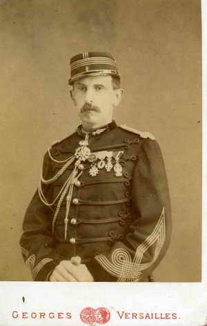 Promu Chef d'escadrons, le 21/3/1882, il est nommé aide de camp du général Ansous, commandant le génie du gouvernement militaire de Paris. Il est ensuite nommé commandant en second de l'école des sous officiers de l'artillerie et du génie à Versailles (poste qu'il occupe lorsqu'il est photographié ci dessus) et en 1886, il reçoit la croix d'officier de la Légion d'Honneur et est nommé chef d'état major du génie en Algérie. En 1889 il est nommé chef d'état major du commandement du génie du gouvernement militaire de Paris.