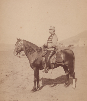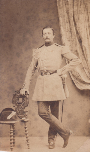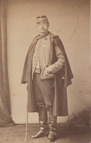 Au déclanchement de la guerre de 1870, le régiment est en Akgérie. Embarqué pour la France, il débarque à Toulon. Affecté à l’armée du Rhin puis à l’armée de Chalons, il participe avec la division de chasseurs d’Afrique à la charge du plateau de Floing le 1er septembre 1870, comme capitaine en second du 3e escadron. Il se fait photographier à Paris (photo de gauche), probablement après son retour de captivité en Allemagne.