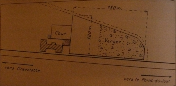 l'est de la ferme et contigu à la cour est un verger en forme de triangle