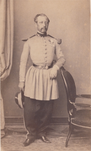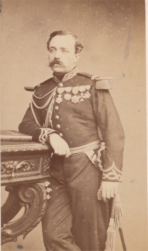 Auguste Adolphe Osmont Né à Montpellier en 1818, Osmont a fait sa carrière dans le corps d'état major et a servi sur la plupart des champs de bataille du Second Empire : Algérie, Crimée, Italie, Syrie, Mexique... Lors de la guerre franco-allemande de 1870, il se distingue et est blessé à la bataille de Noisseville (31 août et 1er septembre 1870, près de Metz). Il a ensuite servi contre la Commune de Paris. Nommé général de division en 1871, il commande en Algérie, puis des corps d'armée en France. Il est mort en 1890. Photo Appert (Paris) |