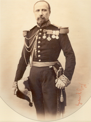 Né à Faverolle (Loire et Cher), ce Saint Cyrien a servi en Algérie et surtout au Mexique où entre 1861 et 1867 il a successivement commandé le bataillon du 2e régiment de Zouaves envoyé dès 1861 et qui s'est distingué sous les murs de Puebla lors des deux assauts de1862 et de 1863, puis du 95e régiment d'infanterie (ici sur la photo). Il est nommé Colonel du 3e régiment des