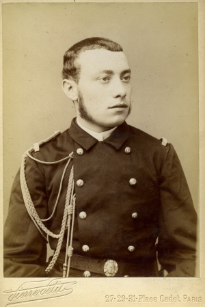 Charles François Maurice Ollivier Saint Cyrien de la promotion des drapeaux (1879-1881), il est nommé Sous Lieutenant le 1/10/1881 au 1er régiment de zouave, grade dans lequel il est photographié ci contre. Après sa promotion comme Lieutenant, le 7/11/1885, il passe au 1er régiment étranger. Il est tué le 3/9/1889 à Tuong Lam au Tonkin. Ce combat est réputé comme étant la plus sanglante affaire des battues dans le nord de la plaine de Phu Lang Thuang en aout et septembre 1889 ("Opérations militaires au Tonkin", Emmanuel Chabrol) : "Pendant que le commandant Pretet fouillait le Boa Day