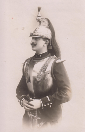 Georges de Milly Né le 23/8/1843 à Saint Firmin dans l'Oise, Georges de Milly est Saint Cyrien. Il est nommé Sous Lieutenant le 1/10/1866 au 7e régiment de chasseurs à cheval, puis envoyé parfaire sa formation à Saumur, ce qui nous vaut ces deux jolis clichés... Beau frère du général Clinchant qui a épousé sa soeur, il est son officier d'ordonnance durant la commune de Paris où il sert avec le grade de Capitaine. Il est blessé le 2/5/1871 dans une reconnaissance près de la redoute des Hautes Bruyères (tranchée de Vanves) et meurt le 15/5/1871 à Bièvres. Il est enterré dans la caveau familial de la famille Cinchant / de Milly. |
