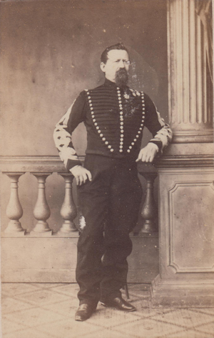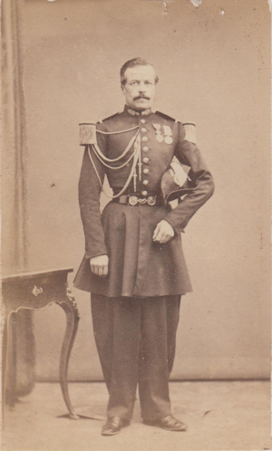 Promu officier en mai 1852, il poursuit une brillante carrière et se signale encore au Mexique lors du siège de Puébla et commande un bataillon de mobile lors du siège de Paris en 1870. Il finit sa carrière comme Lieutenant Colonel, commandant un régiment de la territoriale (ici sur la photo) et reçoit la croix de commandeur de la légion d'Honneur en 1893.