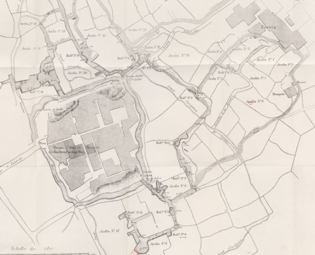 fortifié (Ksar), protégé par un fossé large et profond, situé au milieu d’une